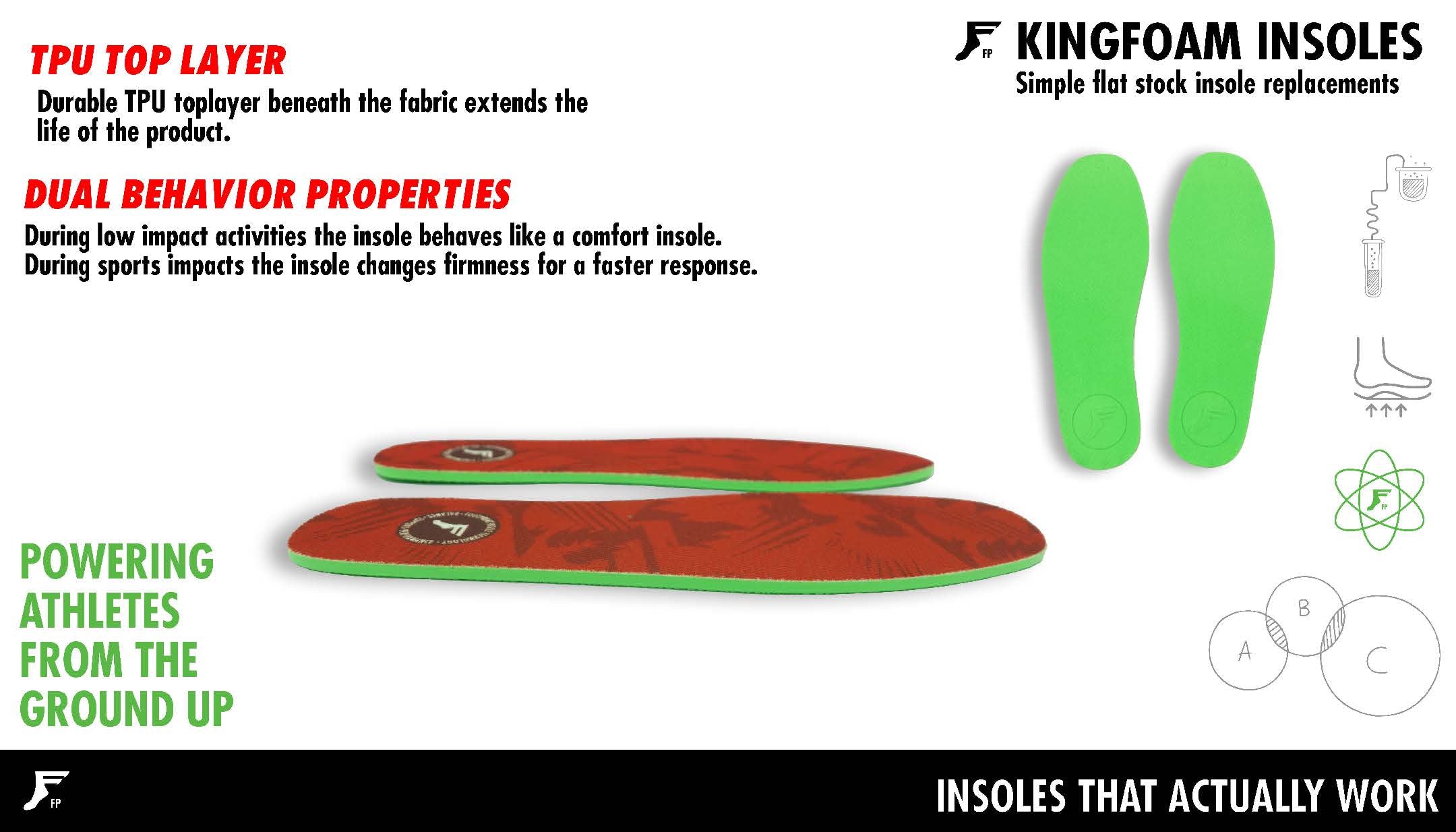 - Absorbs more than 90% of shock energy in lab testing compared to only 53% in other “performance” insoles (ASTM F 1614-1999)